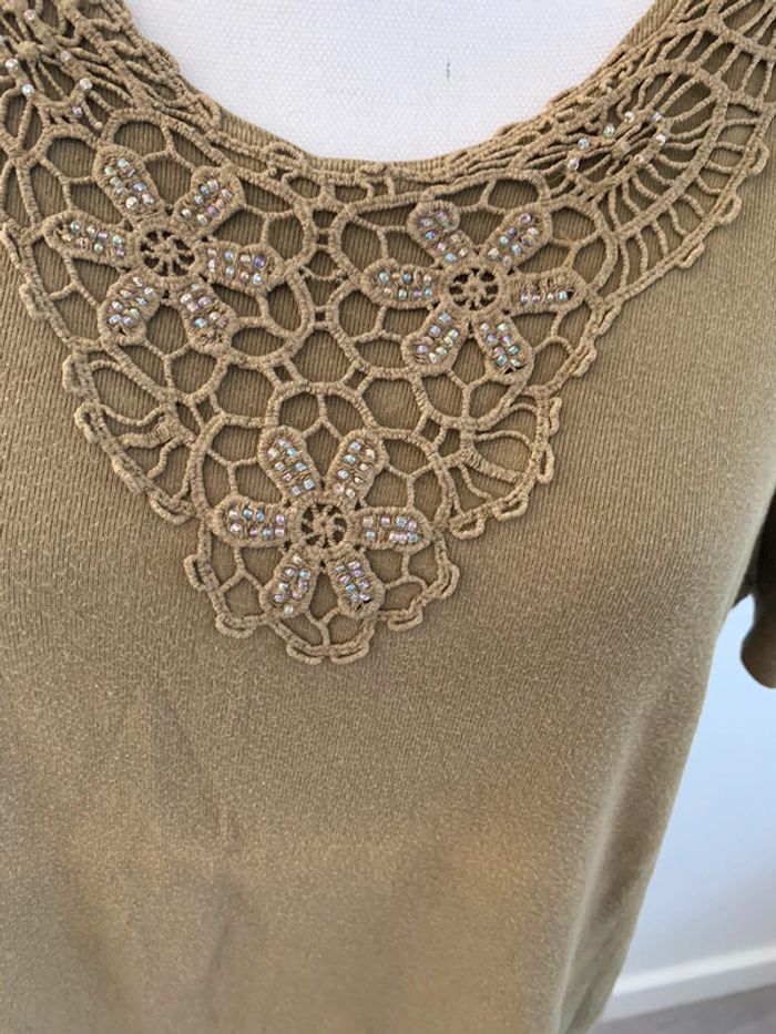 T-shirt perles et broderies Vintage T46/48 3XL/4XL - photo numéro 3
