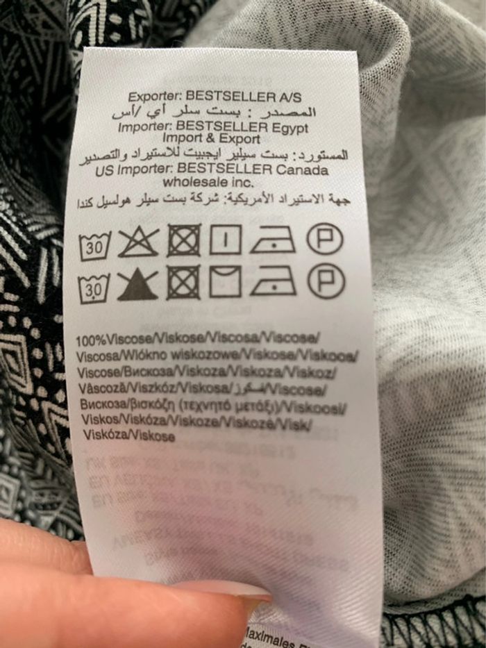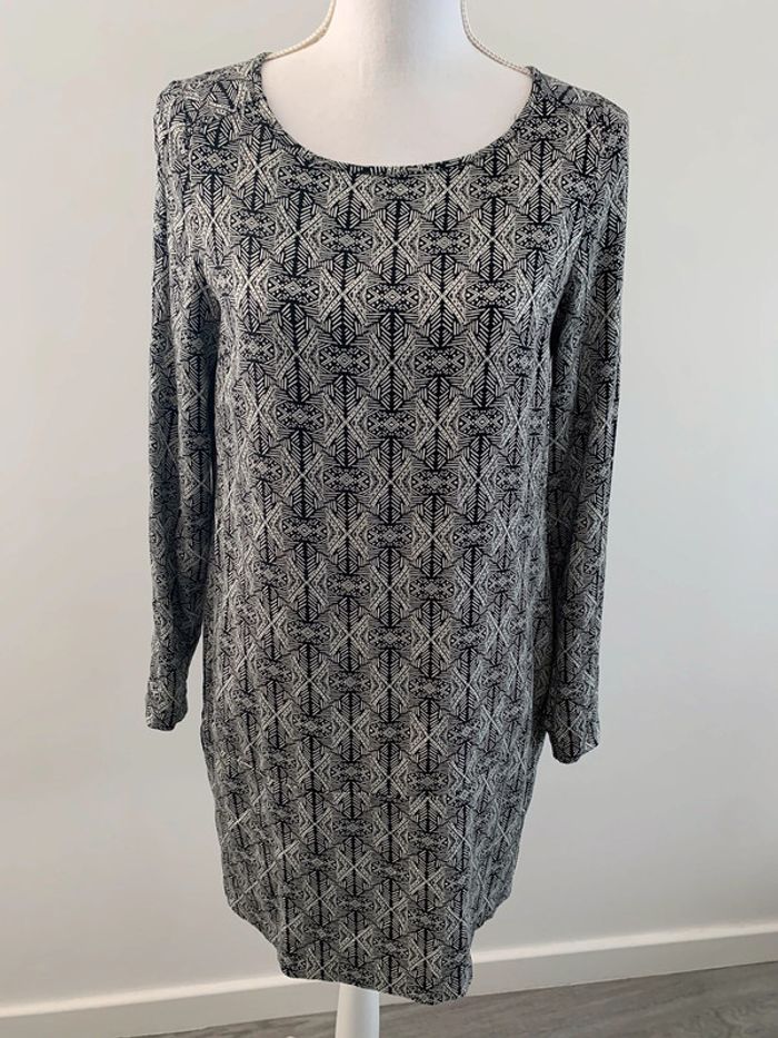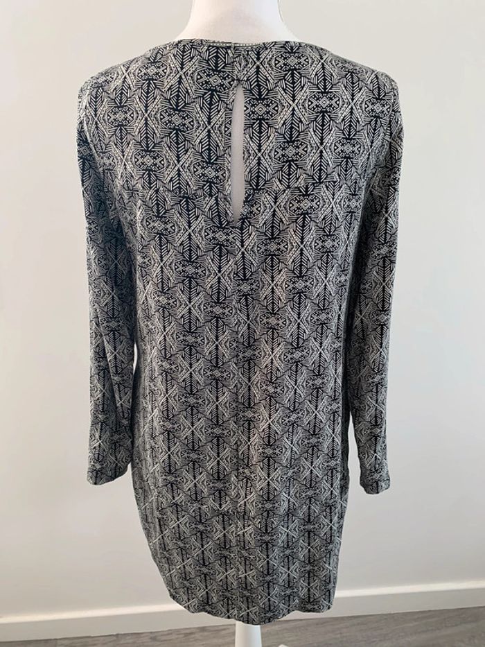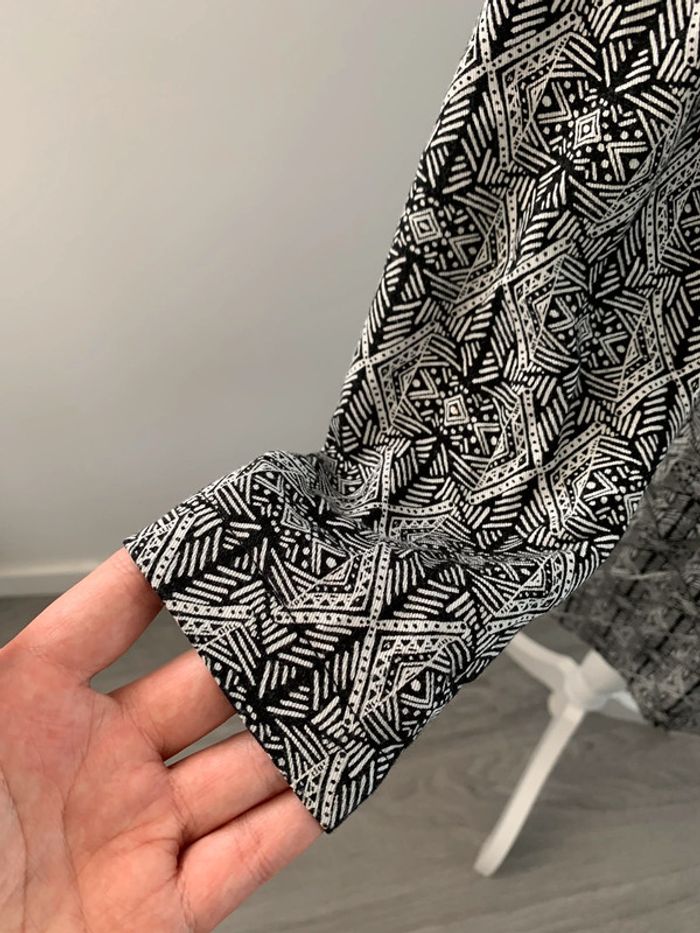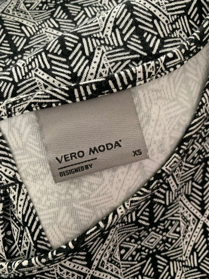 Robe noire et blanche - Excellent état - Vero Moda - Taille XS - 34 - Coupe cintrée - Légèrement ouverte dans le dos - 100% viscose - 2 poches - Motifs ethniques