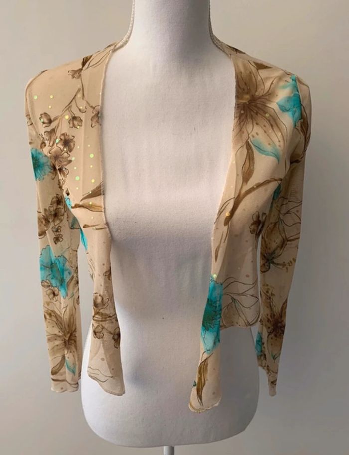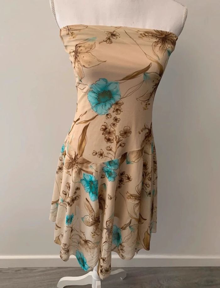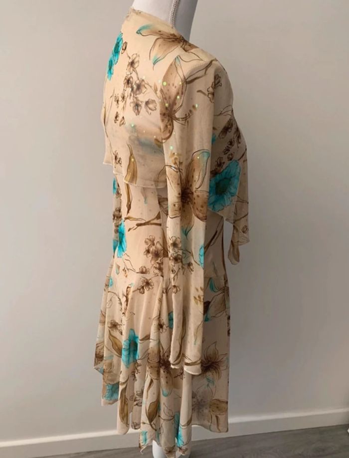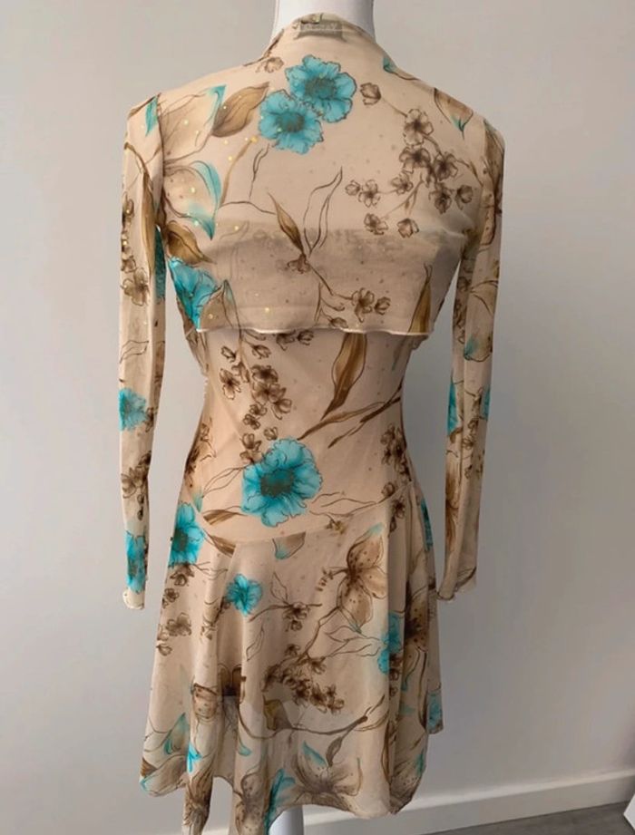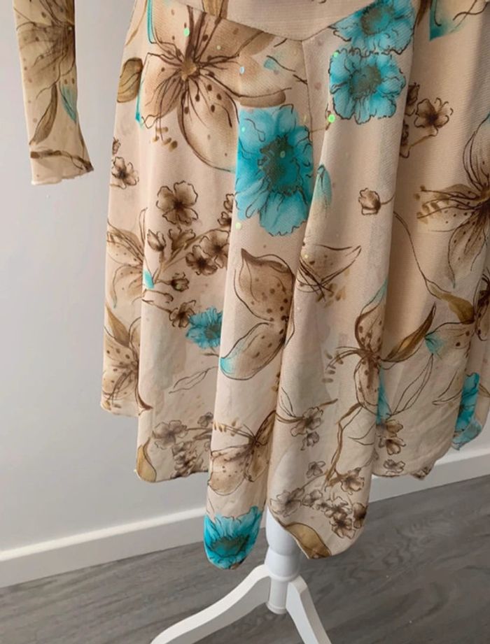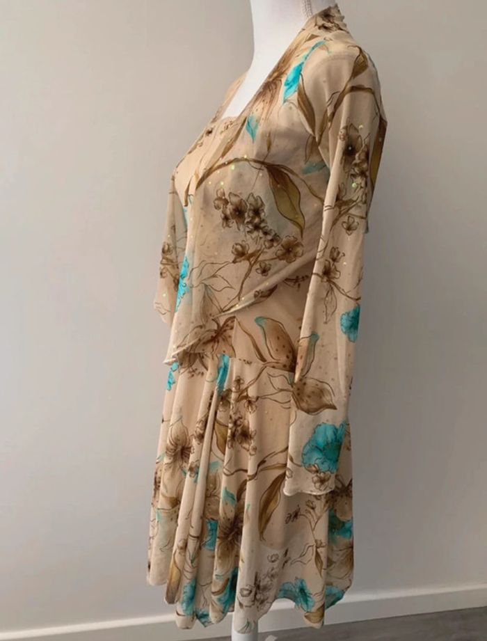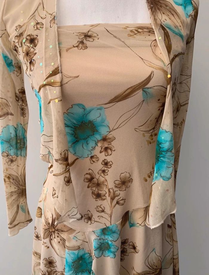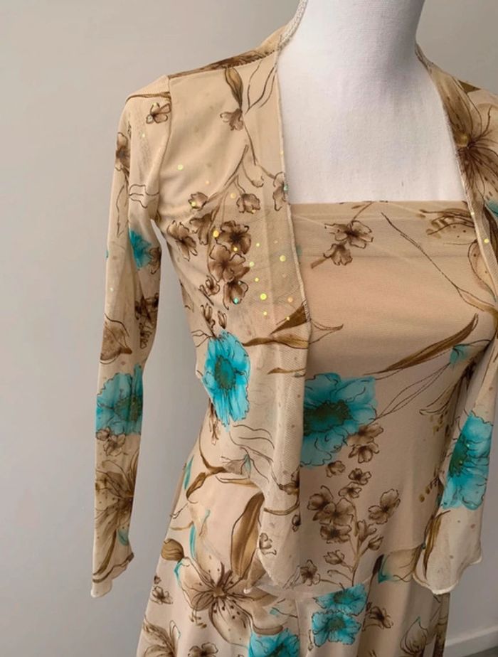 Ensemble à fleurs beige et bleu turquoise Xanaka Vintage T38 M