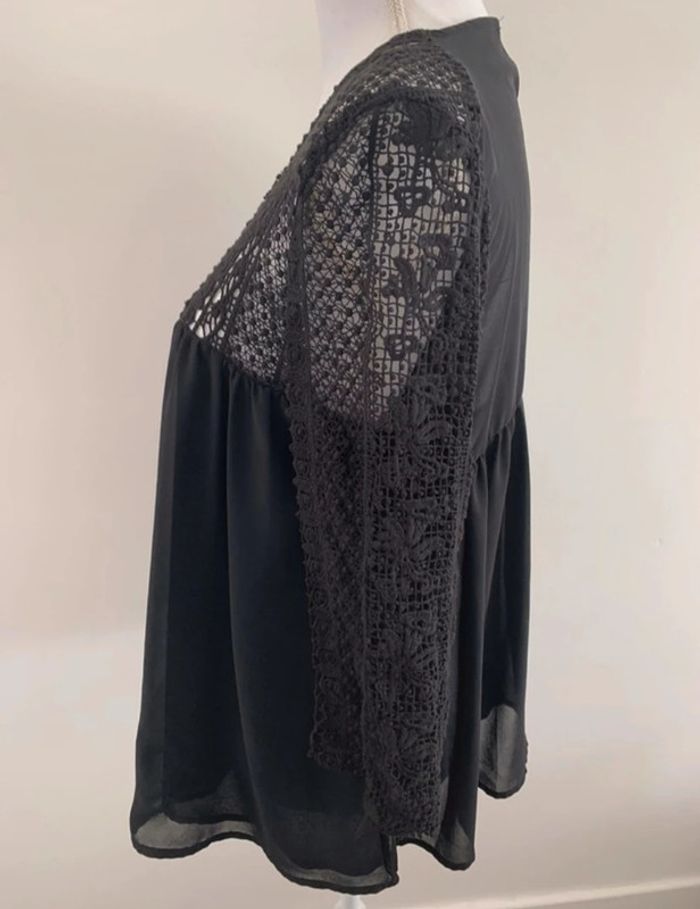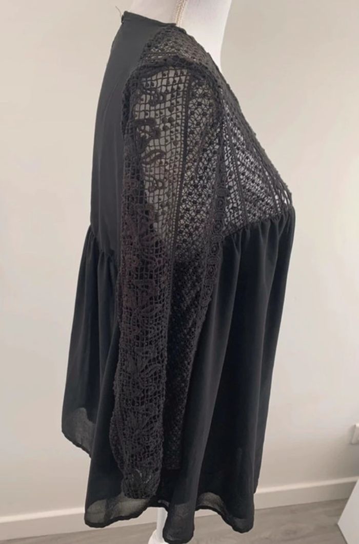 Blouse gothique noire Vintage - Crochet et voile - Taille 40 - Excellent état - Details en crochet - Doublure intérieure - Article Vintage années 90