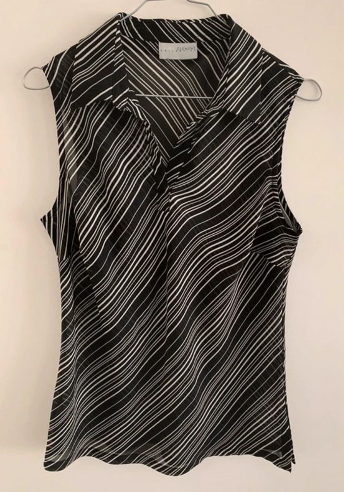 Chemisier psychédélique Vintage - Excellent état - Taille M équivalent 38 - Noir et blanc - Sans manche - Rayures - Laura Clément collection - Années 90 - Motifs psychédéliques - Plus d’étiquette de marque ni de composition