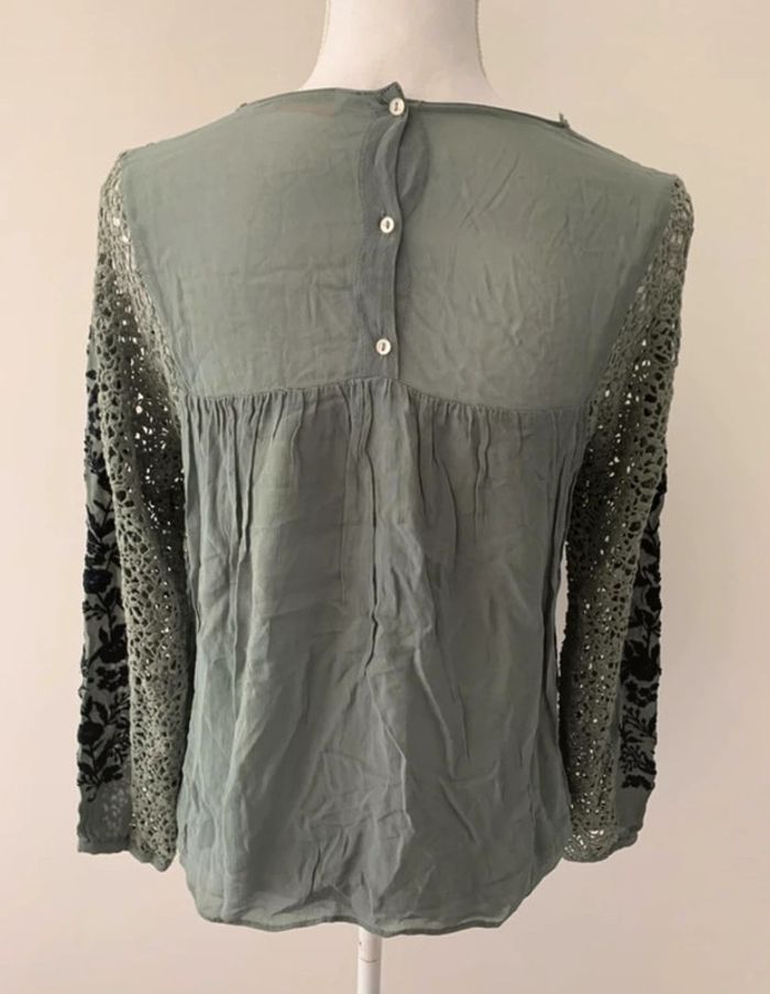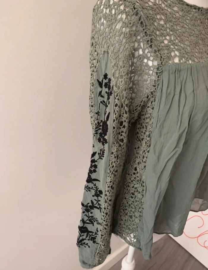 Blouse kaki fleurs et broderies Zara TS - photo numéro 5
