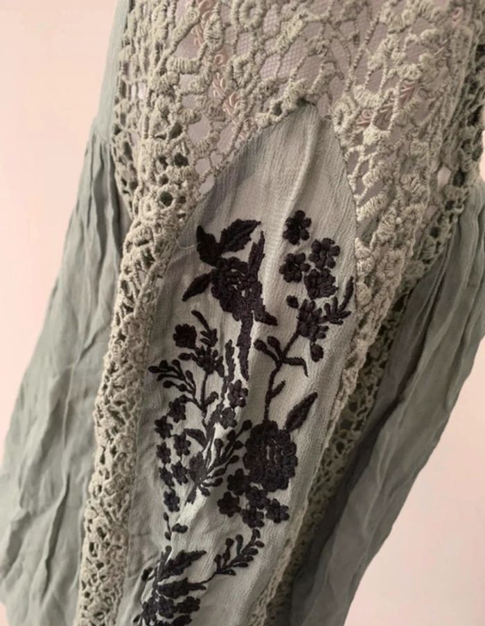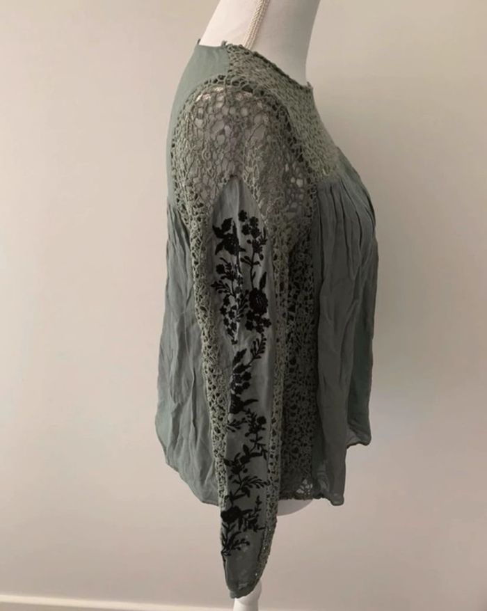 Blouse kaki fleurs et broderies Zara TS - photo numéro 6
