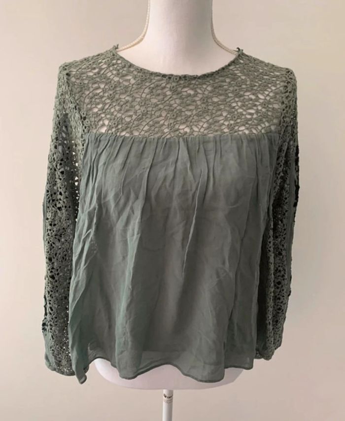 Blouse kaki fleurs et broderies Zara TS - photo numéro 1