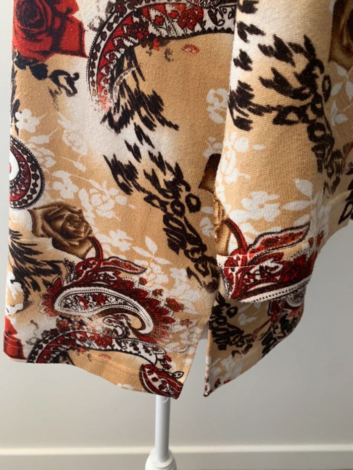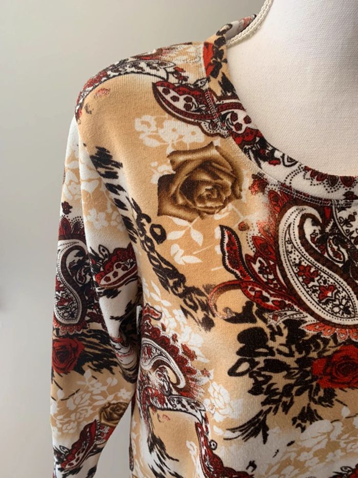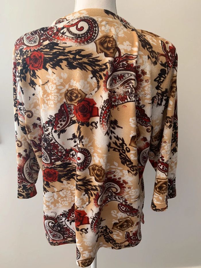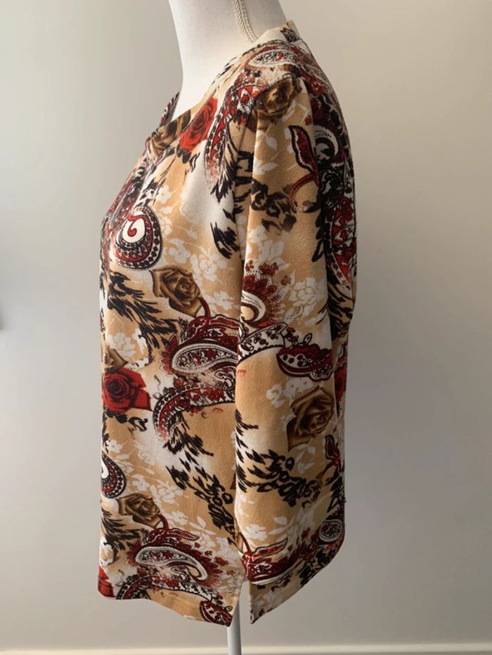 Blouse à fleurs - Excellent état - Taille XL - Manches 3/4 - Epaulettes - Beige et rouge - Motifs fleurs - Vintage années 80