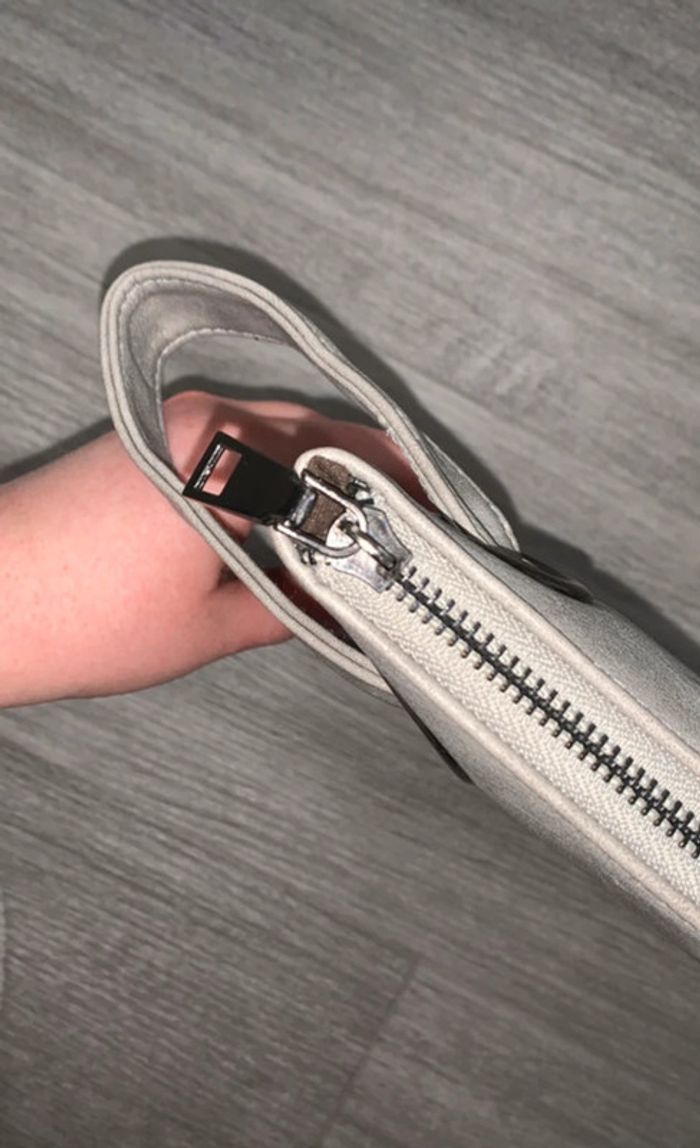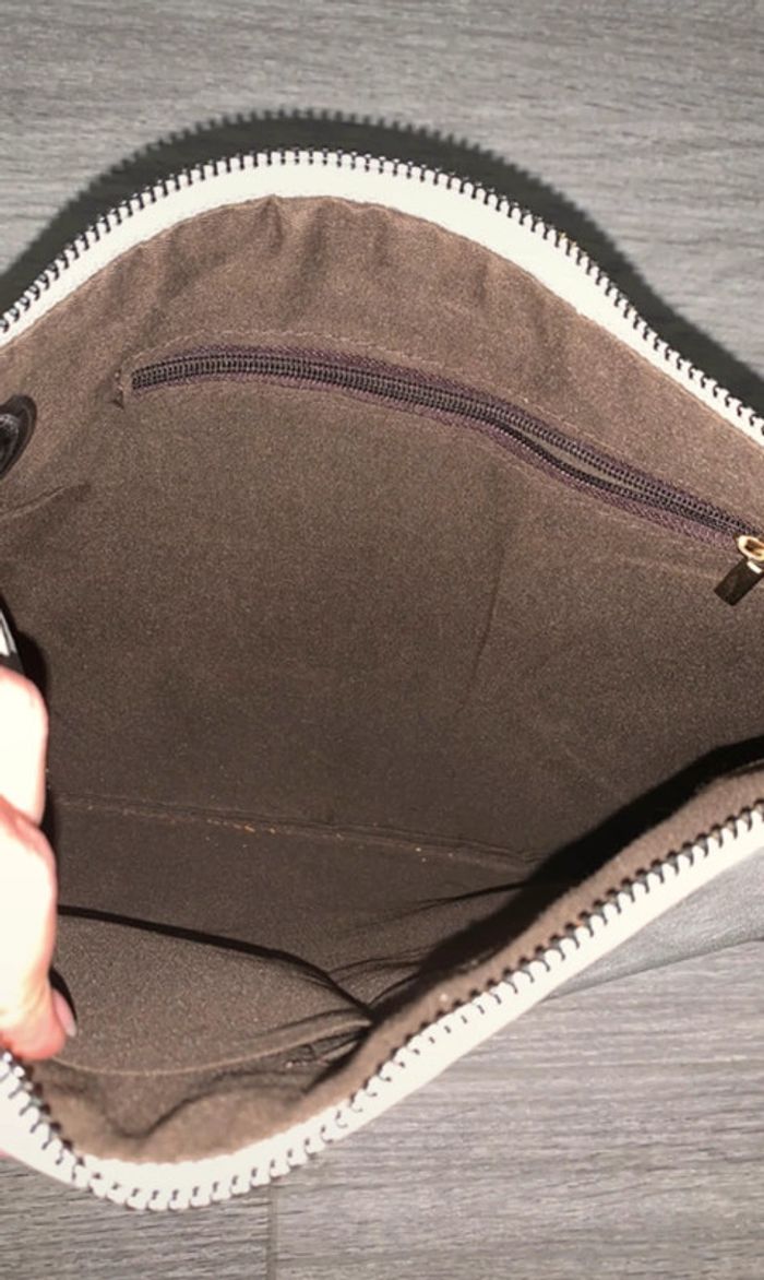 Pochette grise marbre - Excellent état - Grise et blanche - Une sangle - Se ferme avec un zip - Format A5
