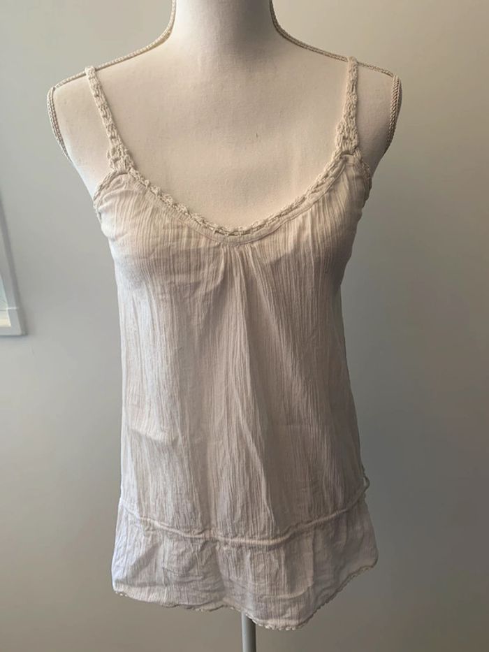 Débardeur blanc - Excellent état - En gaze de coton - Taille 38 - Pimkie - Article vintage années 90-2000’ - Fines bretelles - Possibilité de le serrer sur le bas