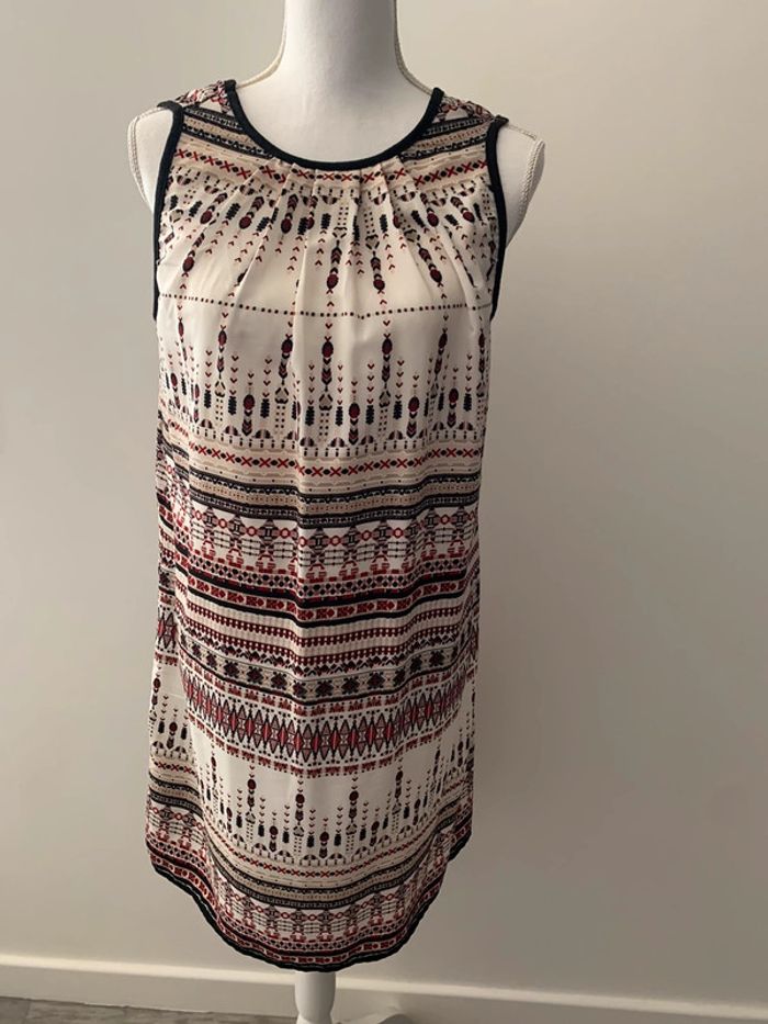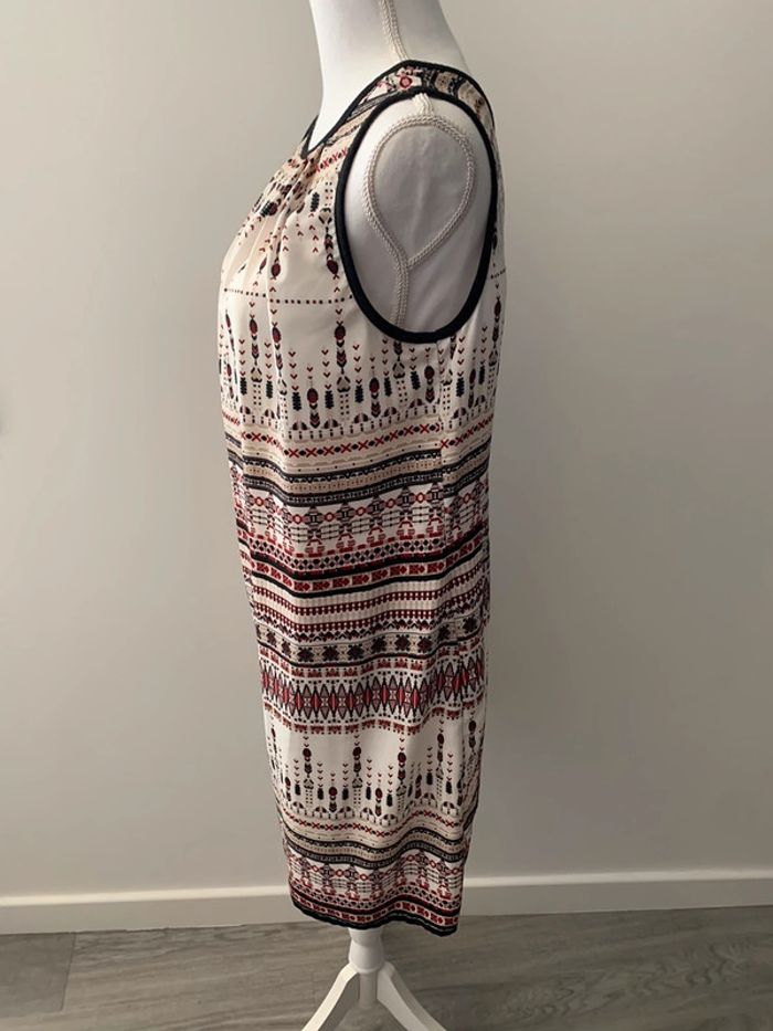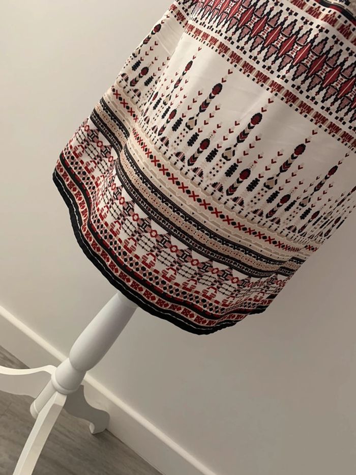 Robe bariolée - Excellent état - Taille 38 - Fabrication française - Bordeaux noire et blanche - 100% polyester - Motifs ethniques