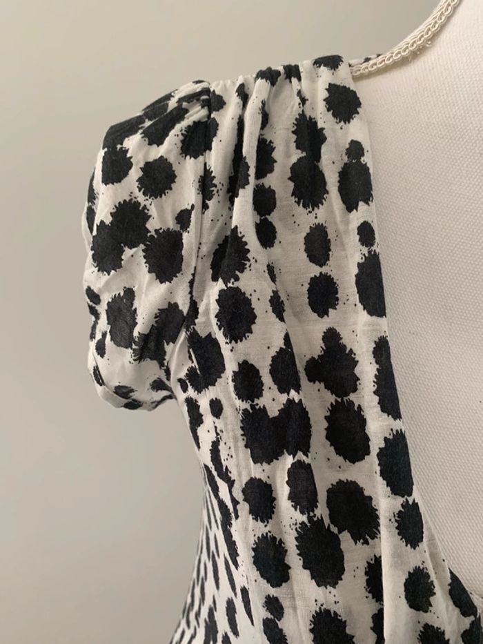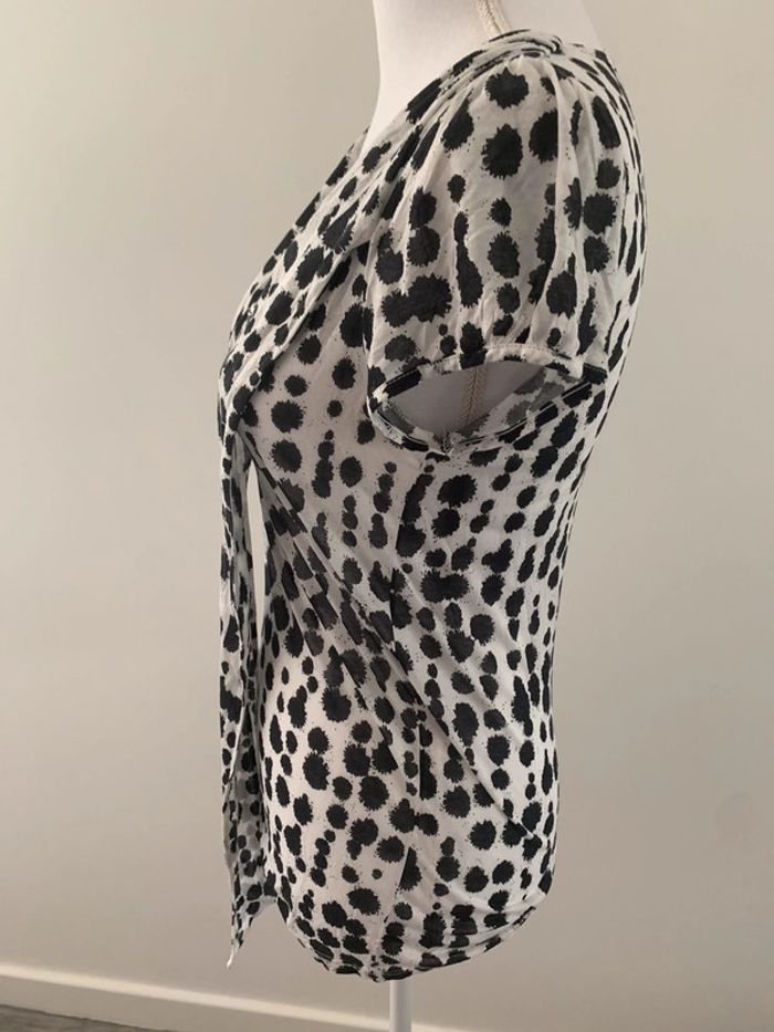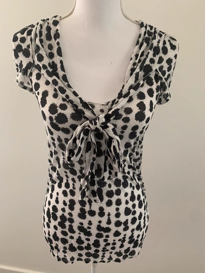 Blouse tâches dalmatiens - Excellent état - Promod - Taille 36 - Manches courtes - Noire et blanche - Liens à nouer sur l’avant