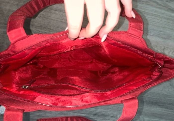 Sac à main rouge bordeaux Vintage - Matière imperméable - Excellent état - 2 poches à l’avant - 1 poche à l’arrière - 1 poche intérieure + 2 compartiments pour glisser un téléphone Dimensions: - hauteur 37cm x largeur 40cm x profondeur 10cm - longueur des anses 50cm