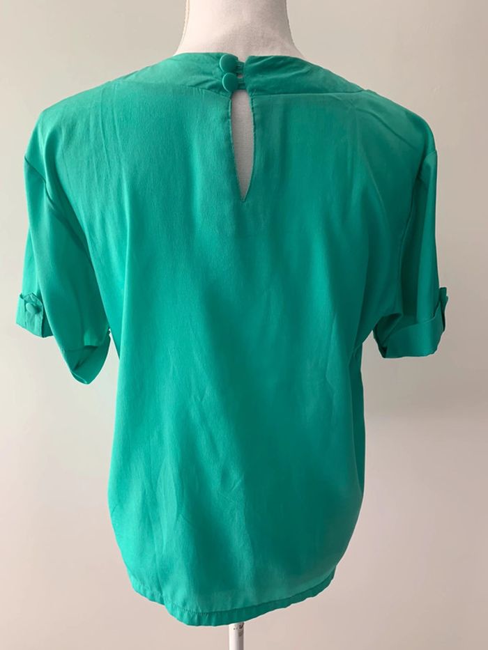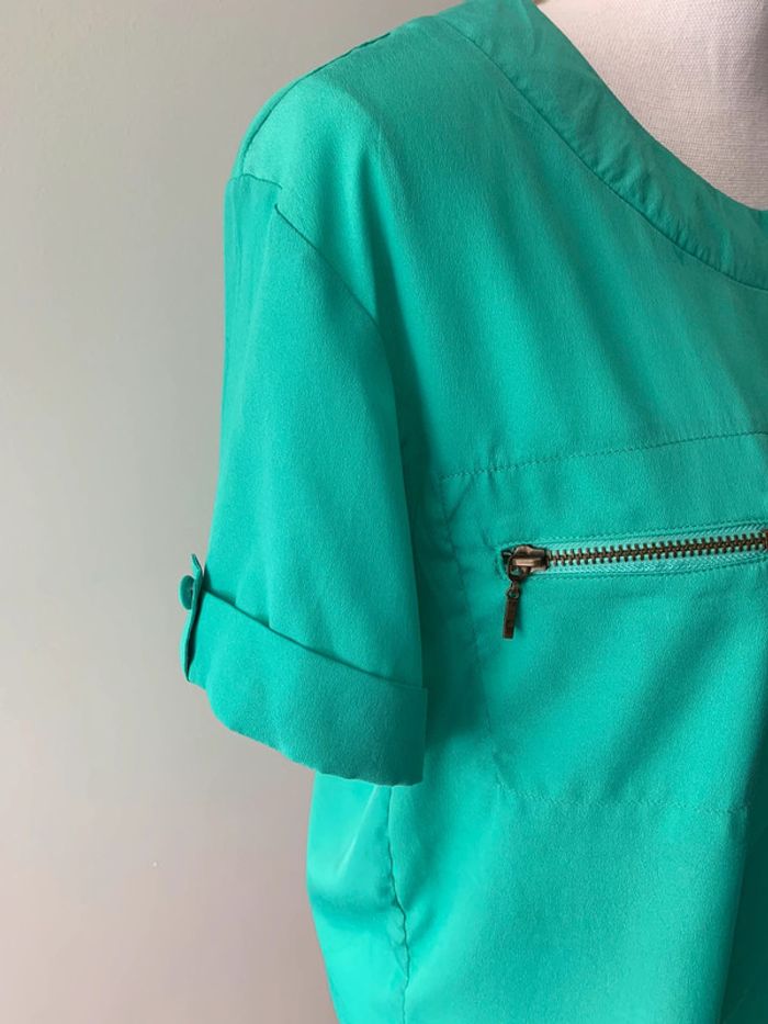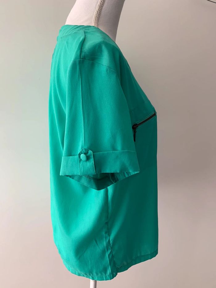 Blouse vert émeraude - Excellent état - Taille L/XL - Deux poches avec zips sur la poitrine - Manches courtes - Matière fluide - Coton et polyester