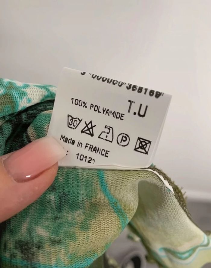 Robe verte et Kaki - Excellent état - Pourquoi pas Vintage années 90’ - Taille unique - Fabrication française - Plusieurs nuances de verts et de kaki - 100% polyamide