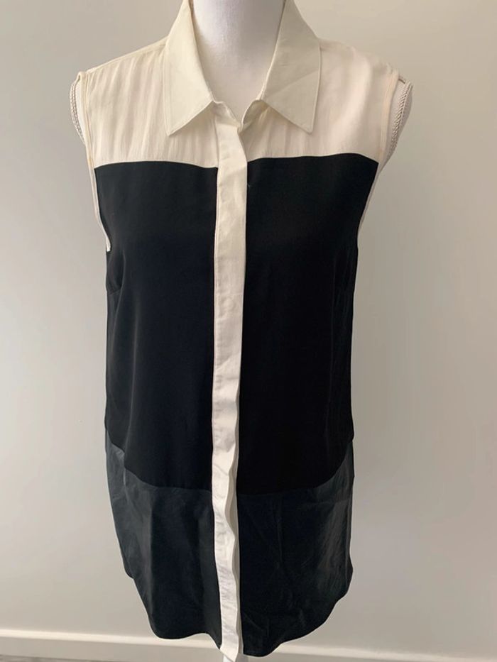 Chemisier Bi matière - Excellent état - Noir et blanc - Empiècement en simili cuir - Se ferme avec des boutons - Sans manche - Taille M - Vila