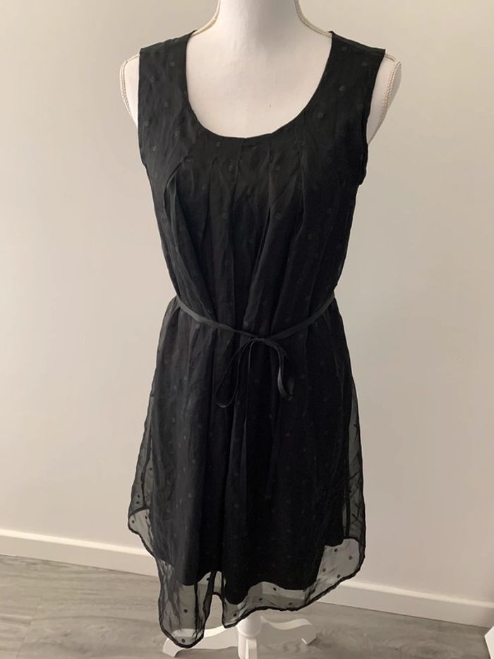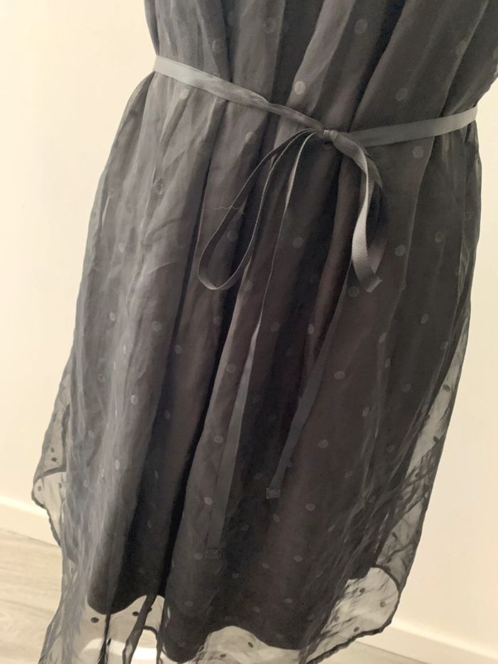 Robe à pois Gémo - Excellent état - Taille 38 - Couleur noire - Doublure intérieure - Polka dot - Tissus en tulle à pois - Noeud à attacher sur l’avant ou l’arrière - Elastique dans le dos - Boutons dans la nuque
