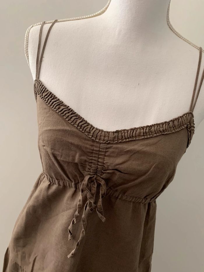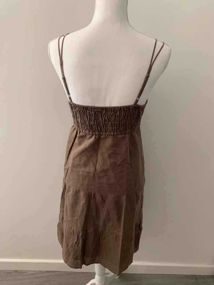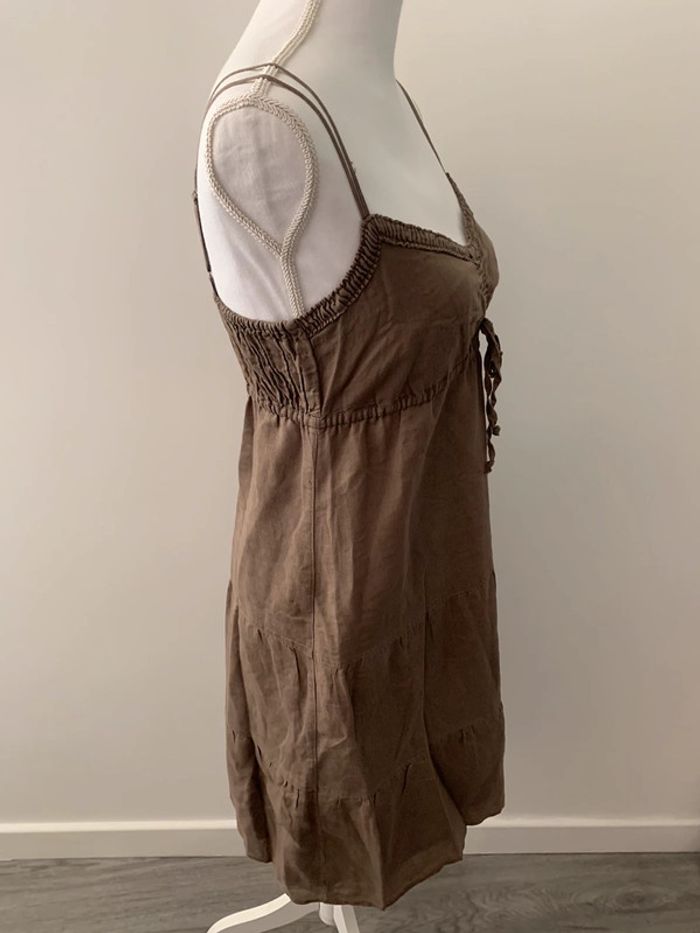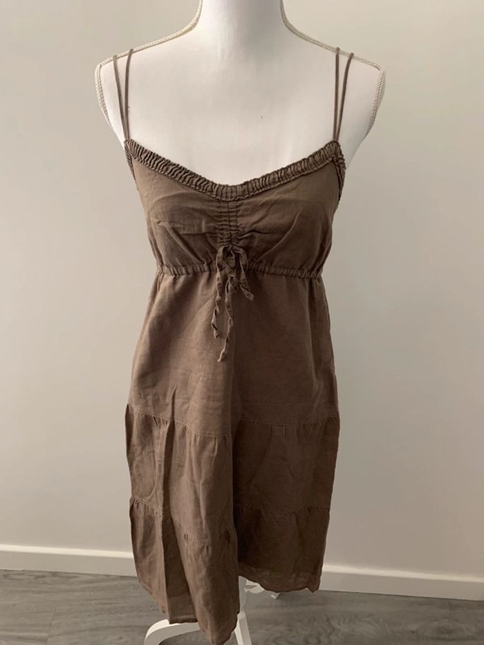 Robe en lin Esprit - Excellent état - Taille 38 - Doublure intérieure - Doubles bretelles - Lin et coton - Flot / noeud sur l’avant - Elastique au niveau du dos - Couleur marron chocolat