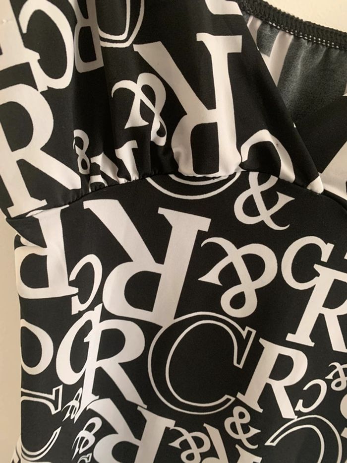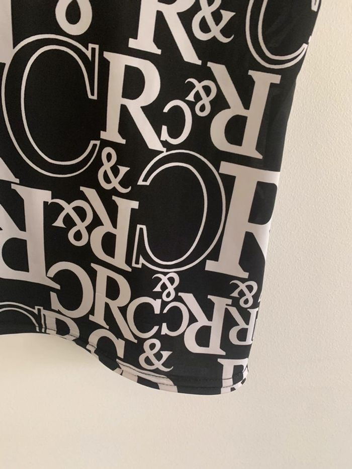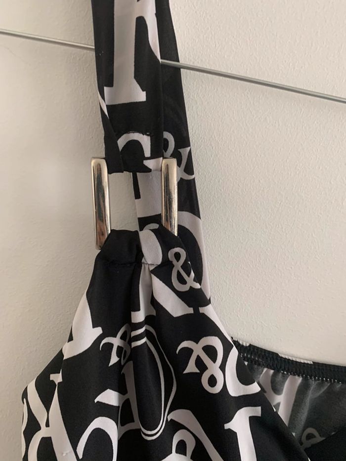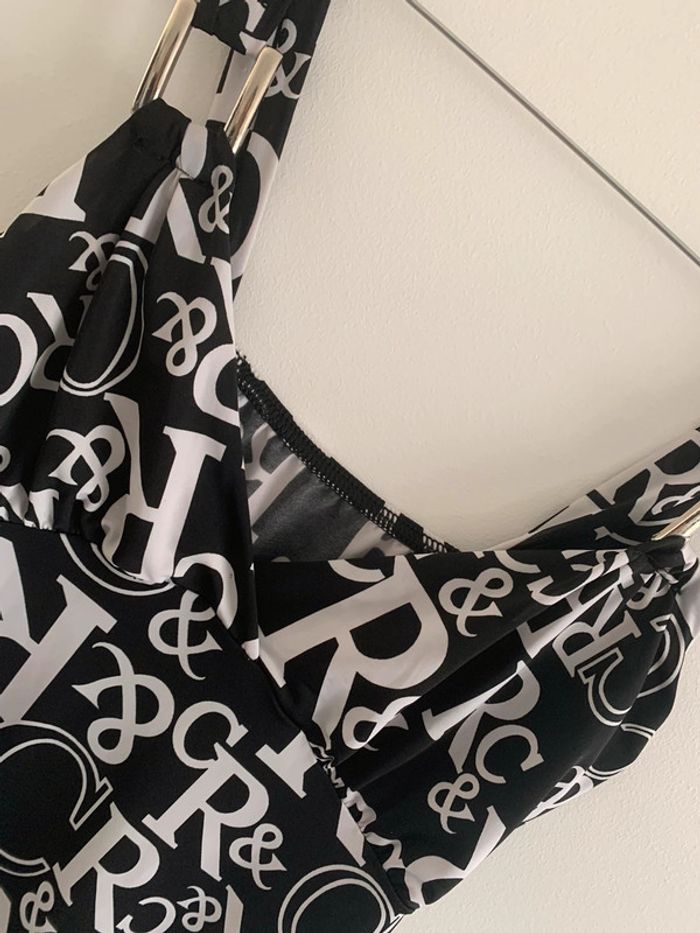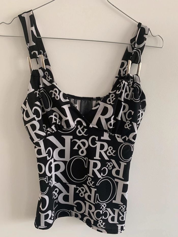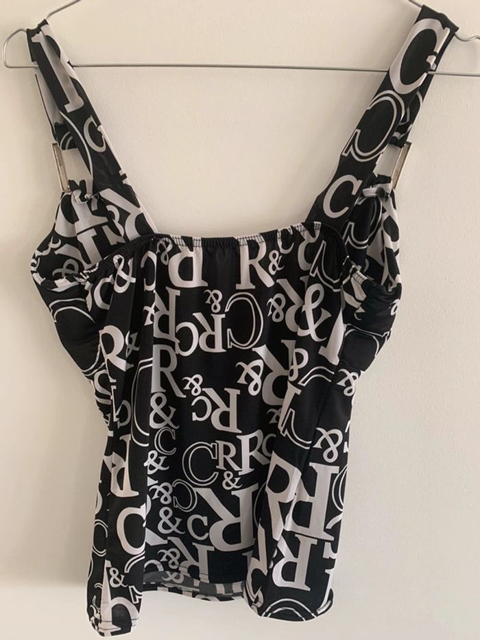 Débardeur imprimé - Excellent état - Noir et blanc - Taille 38 - Sangles argentées - Vintage années 90-2000 - Col en V #vintage #emo #rock #babydoll #goth #y2k #y2kstyle