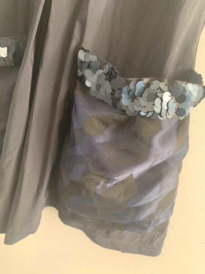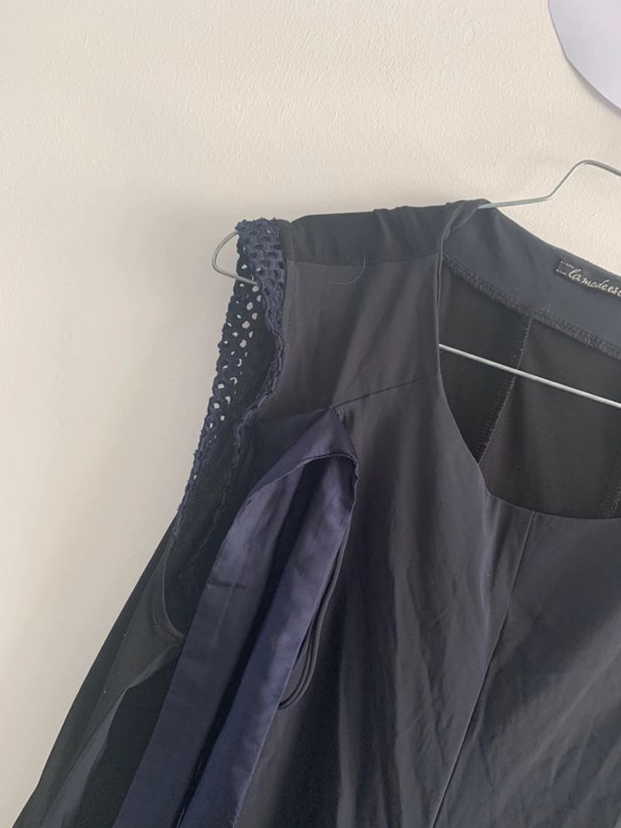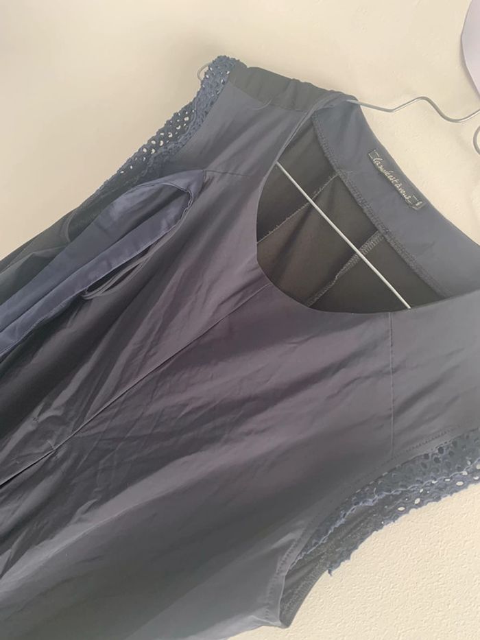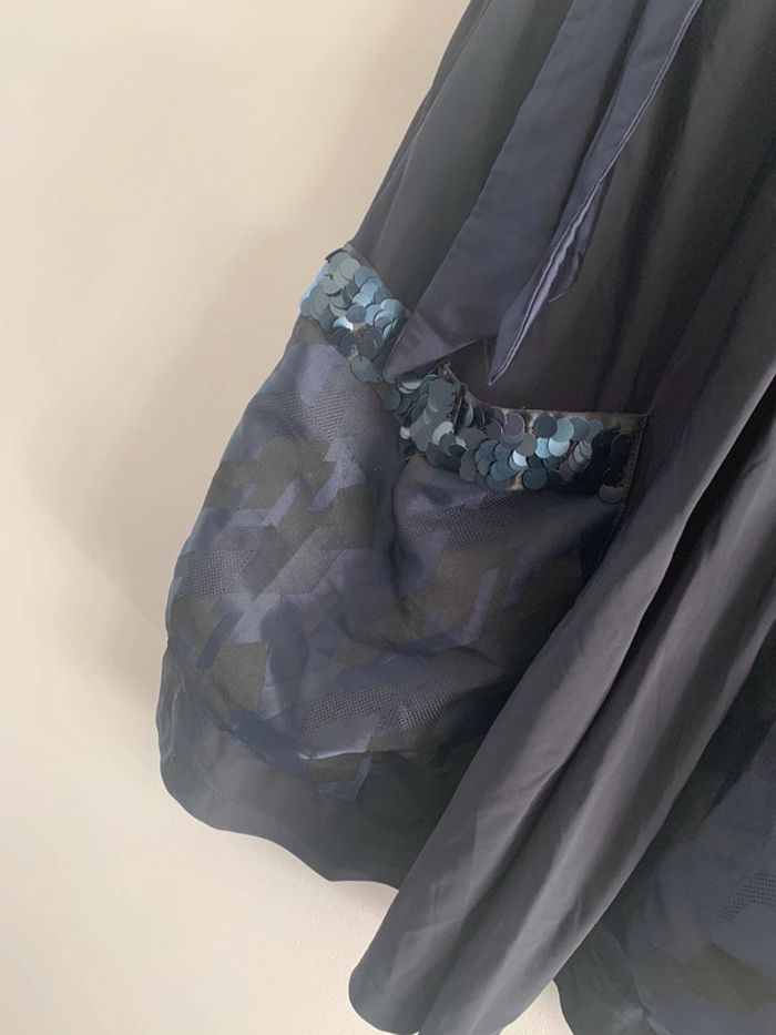 Robe bleue marine - La mode est à vous - Taille 40 équivalent L - Excellent état - Deux poches a l’avant avec sequins - Détails sur les épaules - Ruban à nouer - Polyester, polyamide et elastane