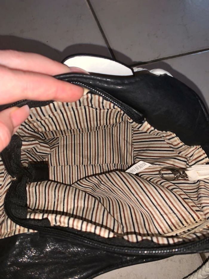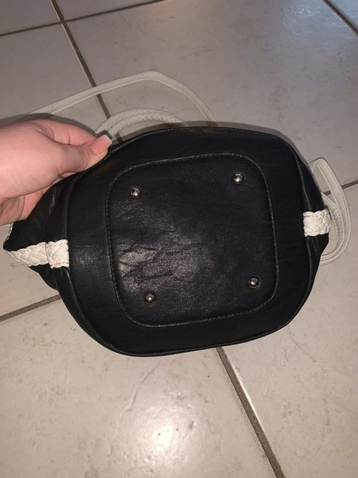 Sac à main rose fleur - Excellent état - Bandoulière réglable et amovible - Noir et blanc - Details argentés - Rose en Simili