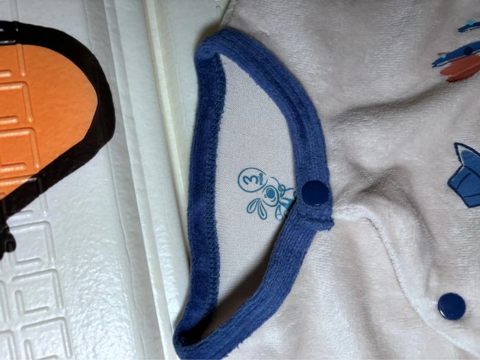 Pyjama en velours taille 3 mois de chez Super U , détail de poche et pressionné devant pratique pour le change . En excellent état un de mes pyjamas préférés