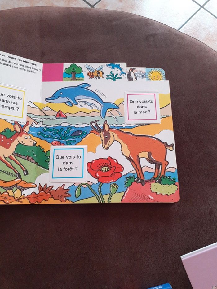 Cache cache nature avec les thèmes suivants Les saisons Qui vit où ? Que vois tu ? Qu'y a t il dans le monde ? Que voit on dans l'univers ?