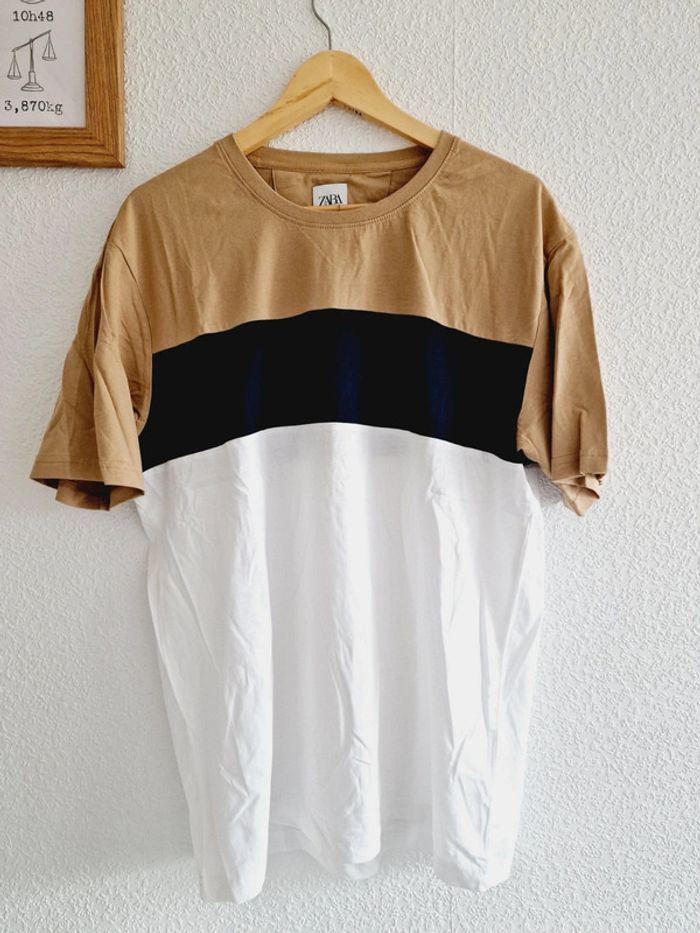 Tous mes articles Zara : #zarasev Tous mes tee-shirts : #tshirtsev Tous mes habits taille XL : #xlsev Tous mes articles pour homme : #hommesev 🚨 Prix fixe Tee-shirt manches courtes, col rond Marque : ZARA Couleurs : beige, bleu marine et blanc Taille : XL État : neuf avec étiquette Largeur épaules : 51 cm Largeur aisselles : 57 cm Longueur : 76 cm 100% coton Retrait sur place ou envoi.