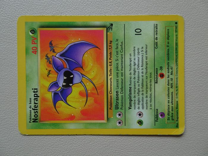 Carte pokemon nosferapti de première génération années 1995 96 98 en bon état.