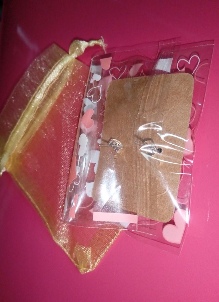 Une paire de boucles d'oreille avec un pochon à bijoux