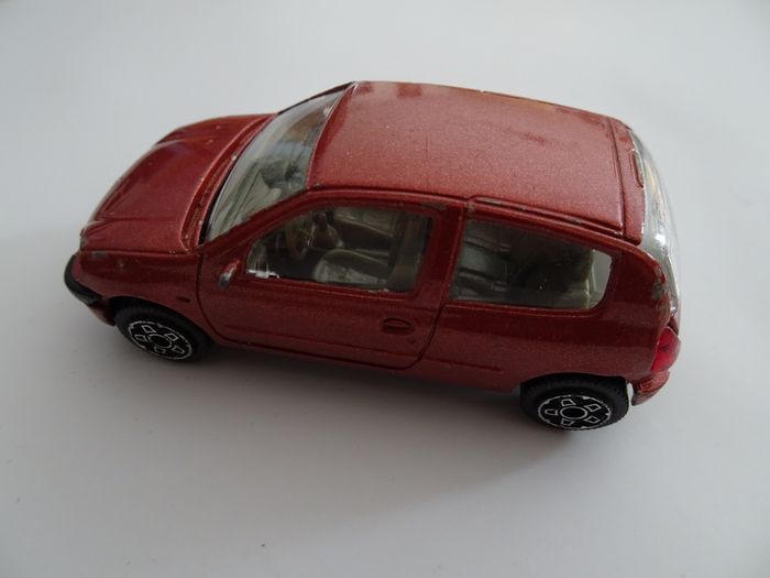 Voiture miniature rouille renault clio marque burago en très bon état, la peinture est partie légèrement à certains petits endroits.