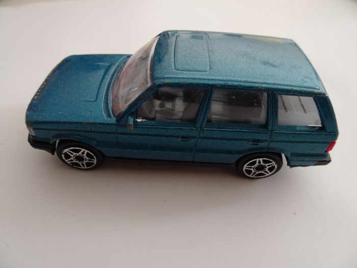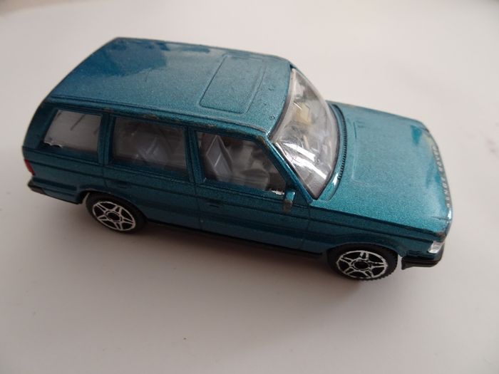Voiture miniature bleue range rover marque burago en très bon état, la peinture est partie légèrement à certains petits endroits.