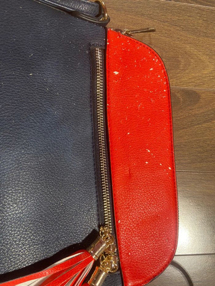 il y a une poche à l’avant et une à l’arrière a l’intérieur il y a deux poches Quelques accros (voir photo)