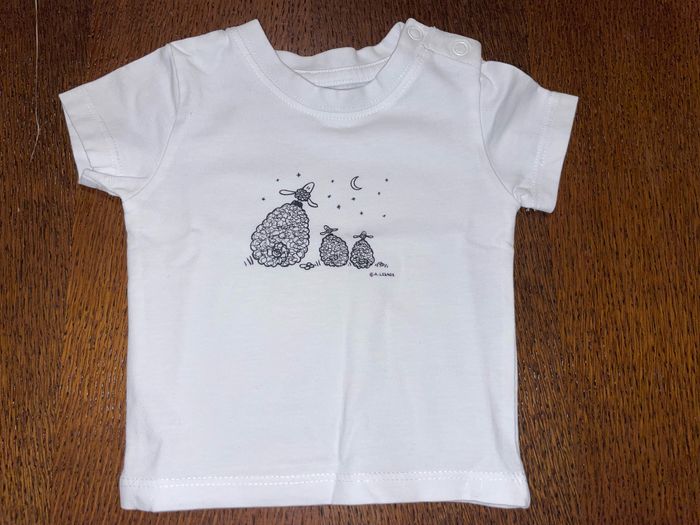T-shirt manches courtes Blanc Taille 3 mois Très peu porté Sans étiquettes de taille et instructions de lavage