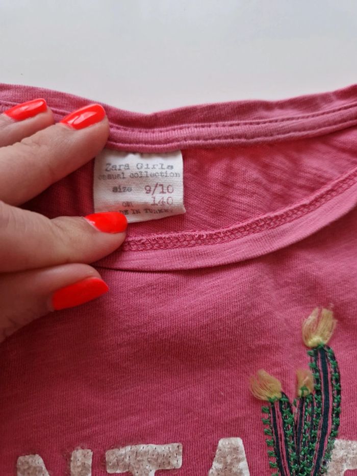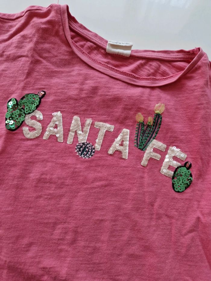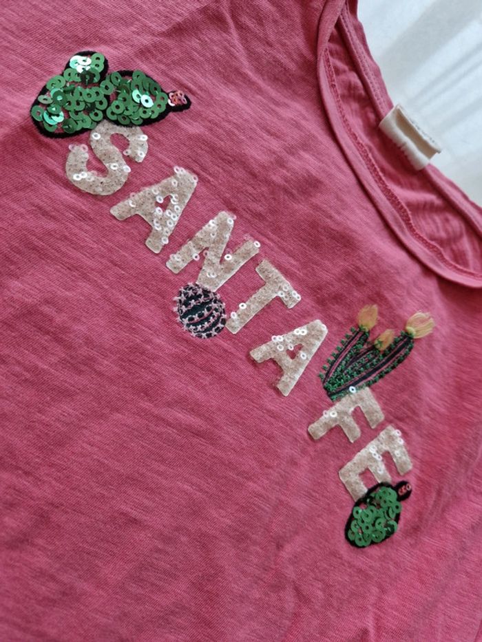 T-shirt à manches courtes pour fille Taille 9/10 ans Marque Zara Coloris rose avec inscription Santa Fr en sequins, et motifs cactus