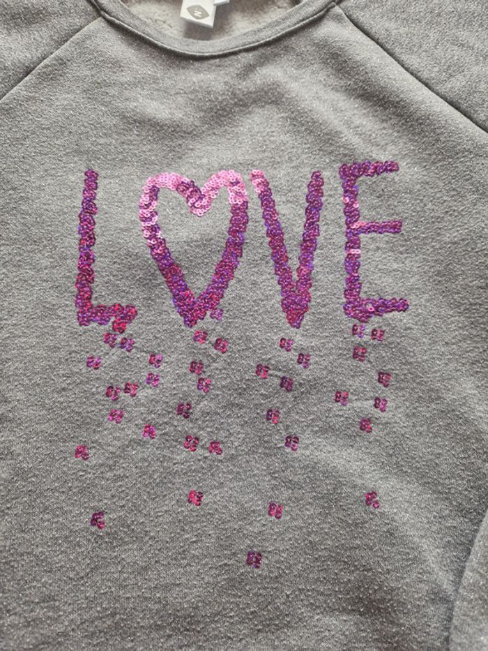 Sweat pour fille Taille 10 ans Marque Z Coloris gris avec inscription Love en sequins fuchsia Très bon état