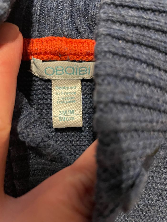 Gilet boutonné Couleur bleu jean Col châle Taille 3 mois Marque Obaïbi