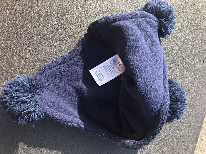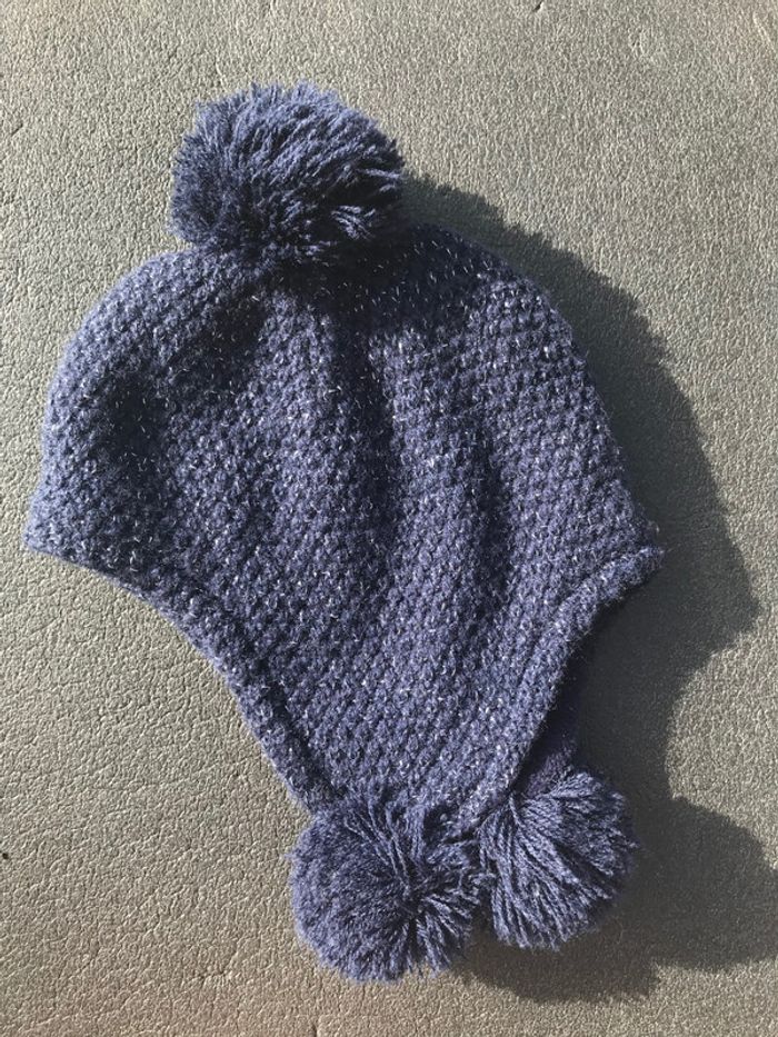 bleu marine avec fils argentés pompons aux oreilles