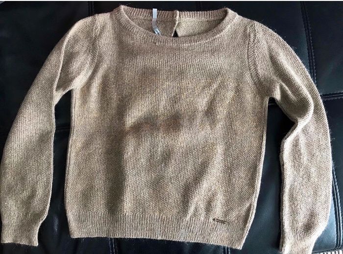 pull fils dores ouverture dos boutons doré