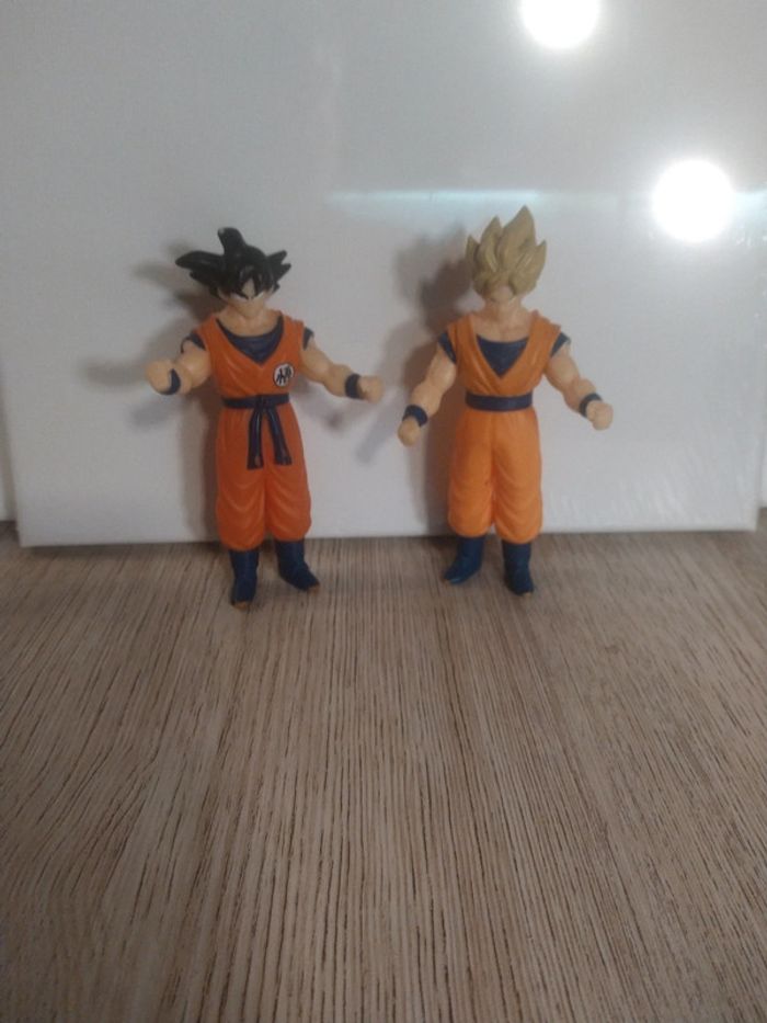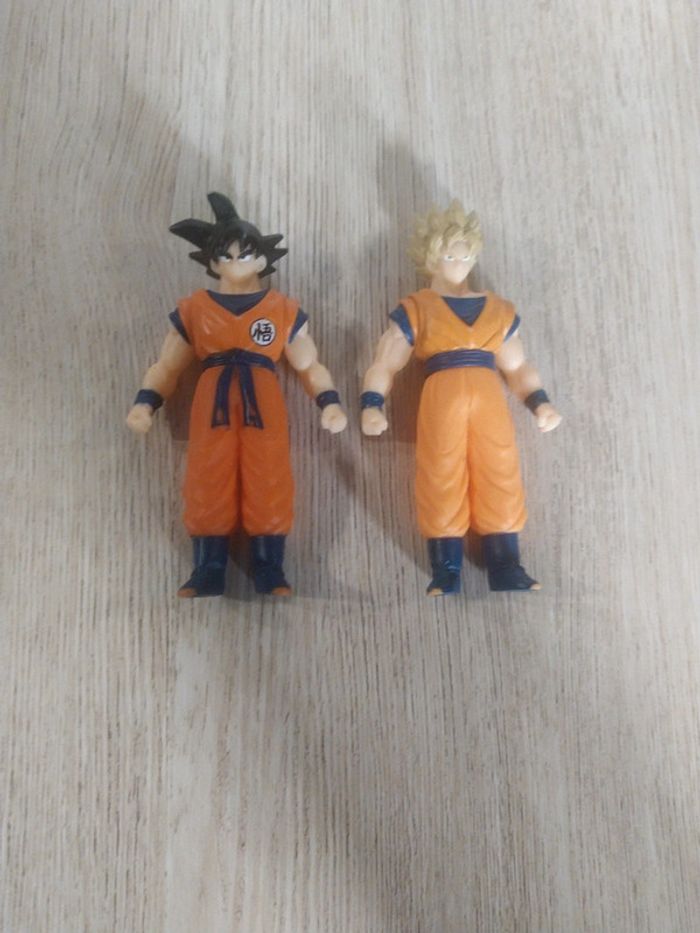 Lot de 2 figurines Dragon Ball Z Le tronc s'oriente très légèrement. Les bras sont entièrement articulés ; on peut les tourner d'ant en arrière complètement. Inscriptions sous les pieds des 2 figurines : Bandai 2008 B/S.T Bon état ; manque couleur à certains endroits notamment au bout et à l'arrière des pieds, état d'usure normal. Voir photos. Rare et collector. #dragonballz #collection #vintage