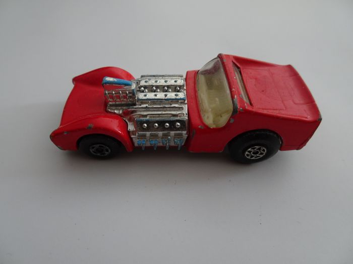 Voiture miniature en métal : Matchbox road dragster, n° 19, made in England, by Lesney, 1970, superfast, en bon état. La peinture est partie à certains endroits.
