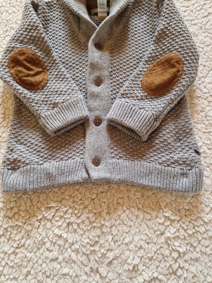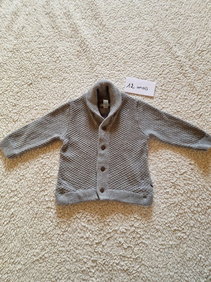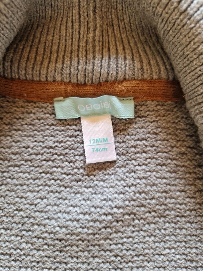 Gilet obaibi 12 mois Gris Empiècement marron aux coudes Col châle Très bon état