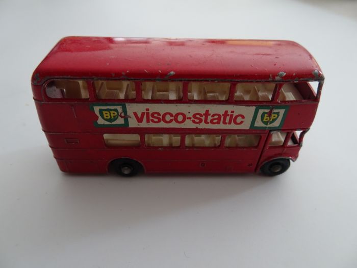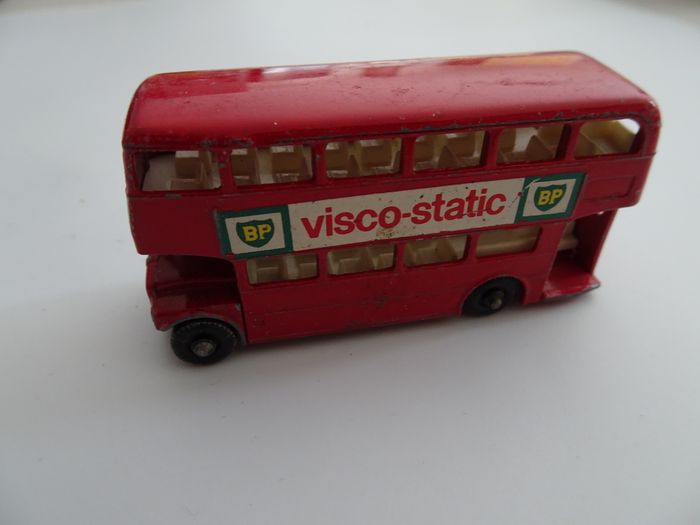 Voiture bus miniature en métal : Matchbox routemaster bus, n° 5, made in England, by Lesney, en bon état. La peinture est partie à certains endroits.