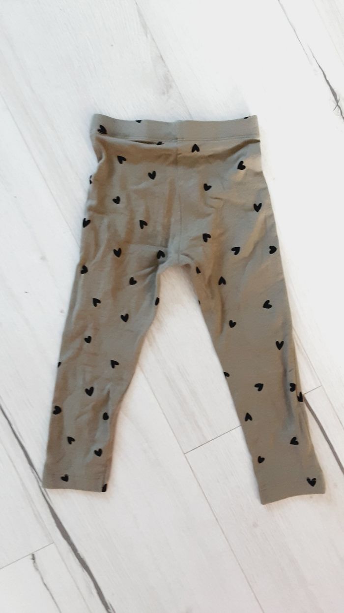 Vêtement fille pantalon legging kaki motifs coeurs Kiabi 3 ans - photo numéro 2