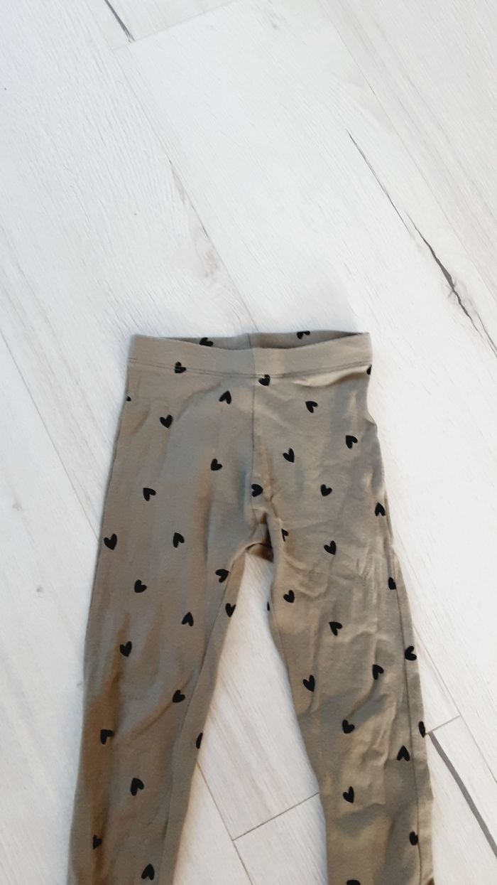 Vêtement fille pantalon legging kaki motifs coeurs Kiabi 3 ans - photo numéro 3
