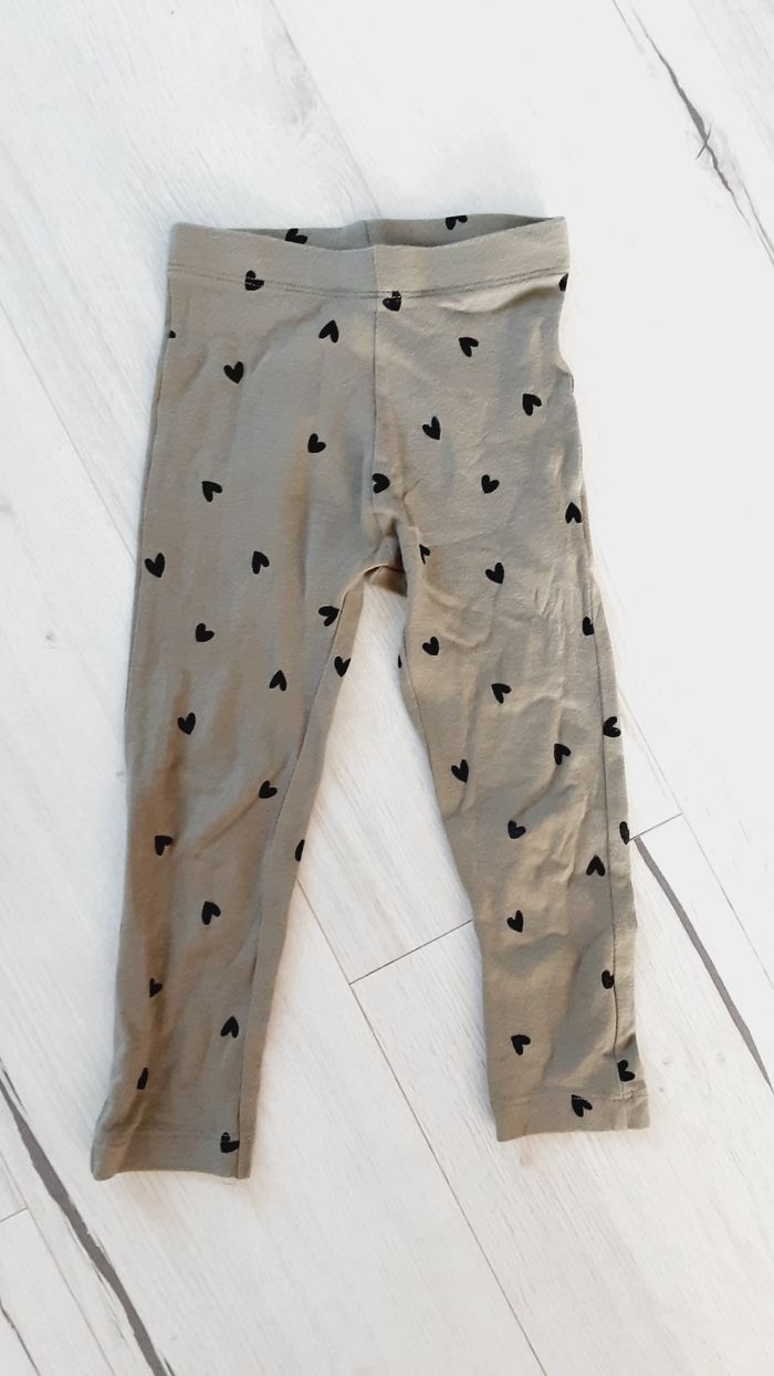 Vêtement fille pantalon legging kaki motifs coeurs Kiabi 3 ans - photo numéro 1