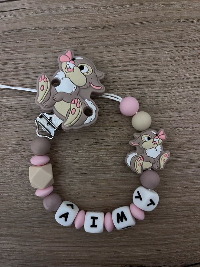Attache tétine personnalisé en silicone ou en bois au souhait de l’acheteur . Personnalisable au choix de l’acheteur que ce soit la couleur comme le prénom ou le thème . Le fil est doublé pour plus de sécurité tout le long de l’attache tétine. N’hésitez pas à me demander et regarder mon dressing. Une photo vous sera envoyée avant l’expédition pour vous ayez un aperçu du rendu. Tous les produits sont réalisés avec du materiel spécial conçu aux bébés , enfants.