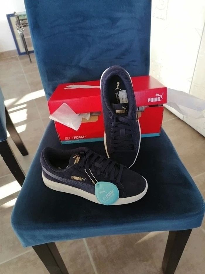 Neuves, sorties de la boîte pour les photos, pas essayé... Basket Smash V2 Couleur Peacot Gold Whisper White. Aspect dain.