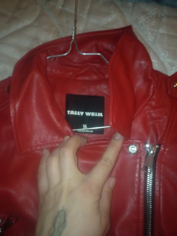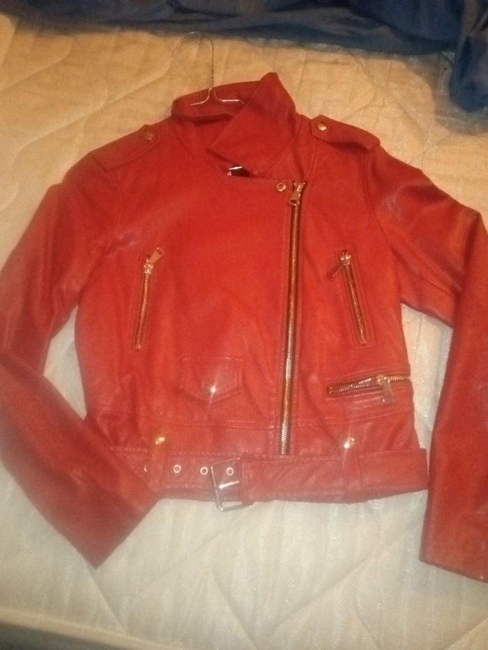 Veste en cuire rouge taille 36