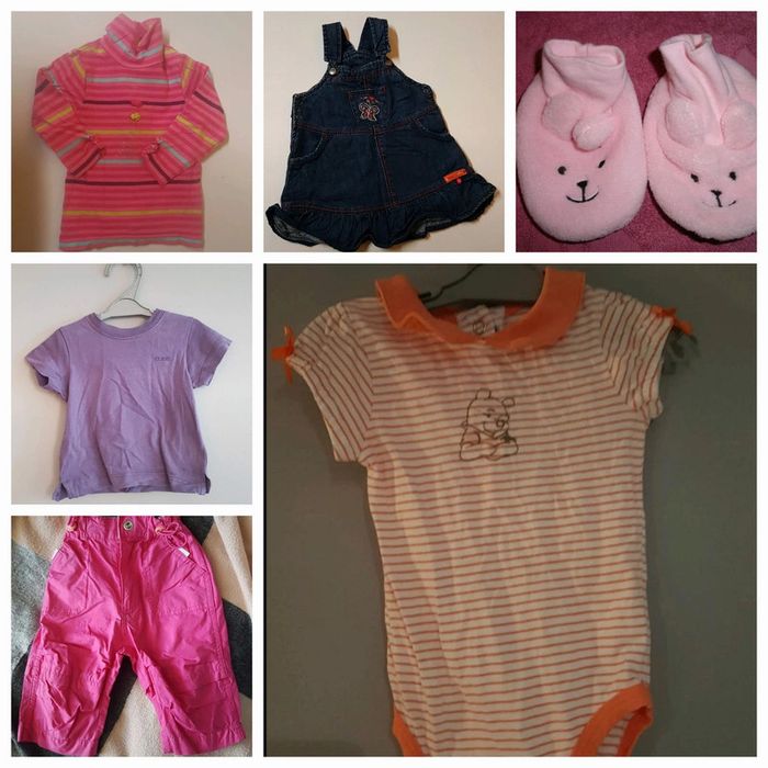 Achat individuel possible, prix devant chaque article demander en mp pour diviser le lot 1. Sous pull col roulé rose marque Orchestra 1,50€ 2. Robe en jean marque Orchestra 2€ 3. Chausson rose NEUF 2€ 4. T shirt violet marque Pick Ouic 1€ 5. Pantalon rose 1€ 6. Body Winnie marque Disney 1€ Taille 6 mois #tif5061fille6mois #tif5061orchestra #tif5061pickouic #tif5061lot Bonjour...🤗 ✔ Envoy UNIQUEMENT par mondial relais et relais colis. ✔ départ du colis dès le lendemain. ✔ petite surprise dans le colis..😉 ✔ plus de photo et renseignement sur demande. 📵mes attentions aucune photo portée📵 🚫 pas de réservation, pas de retour, pas d'échange, pas de remboursement. Merci de votre compréhension..😍🤗😁