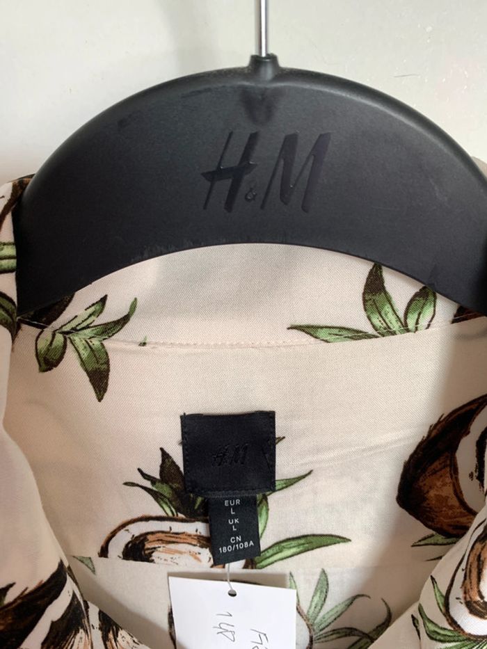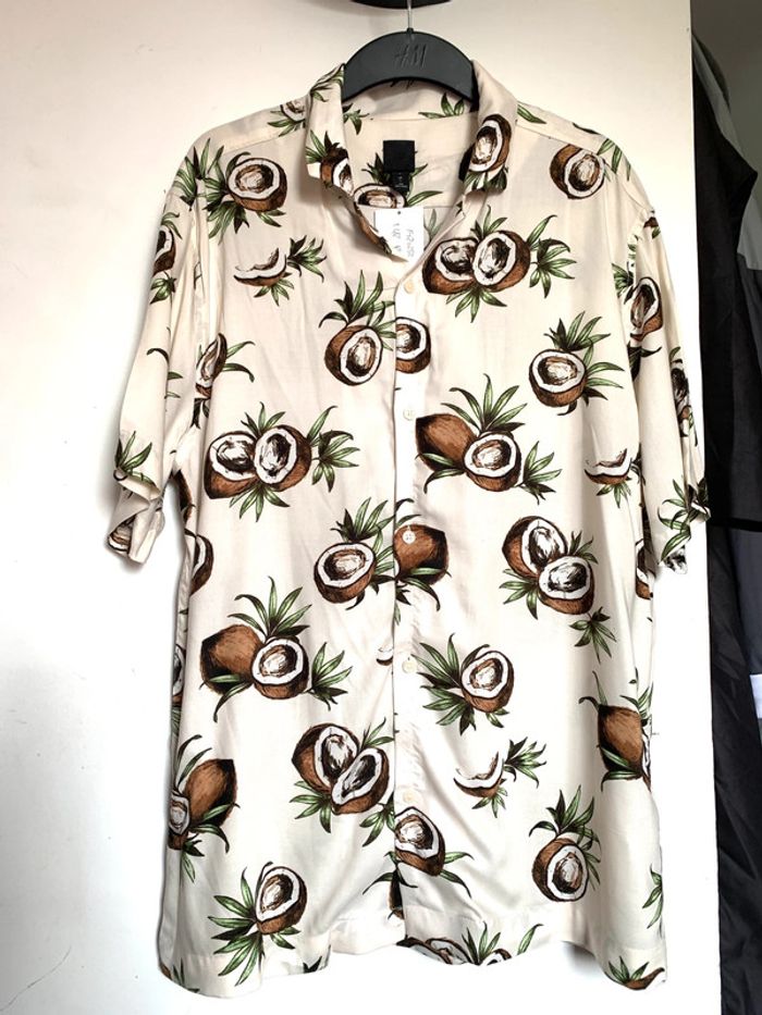 Charmante chemise d’été style hawaïenne Imprimé Coco Coupe normale A porter seule ou ouverte en surchemise avec un t-shirt basic blanc et 1 short 🩳 Très fraîche Taille L Neuve avec étiquette 15€
