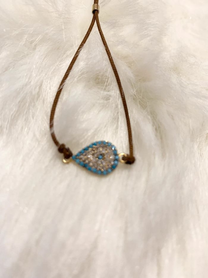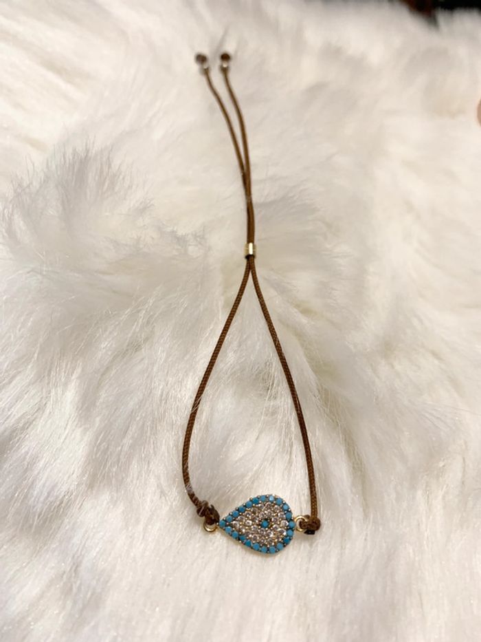 Très beau bracelet porte bonheur Réglable Cordon marron Pendentif en acier inoxydable doré avec strass A saisir 10€