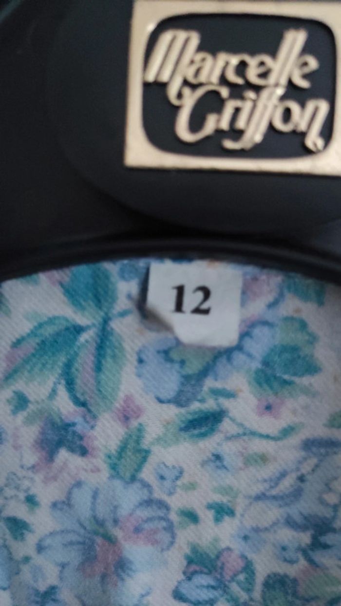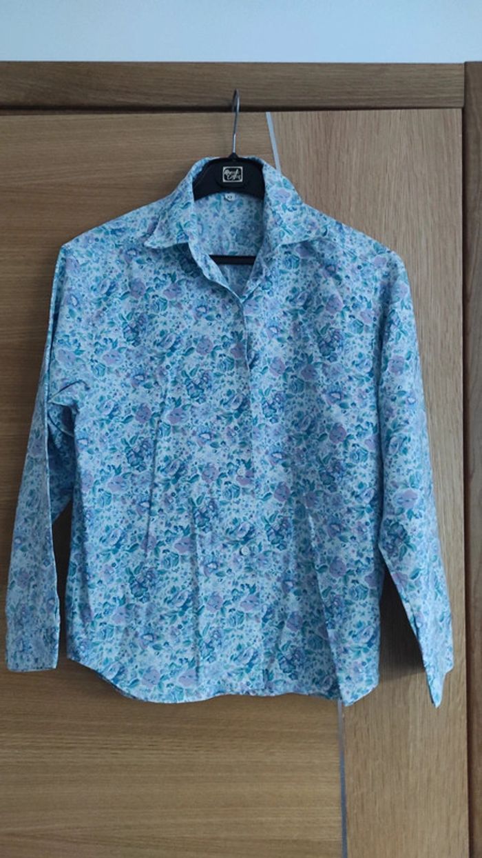 Chemise blanche avec motif floral bleu/rose Taille 12 ans
